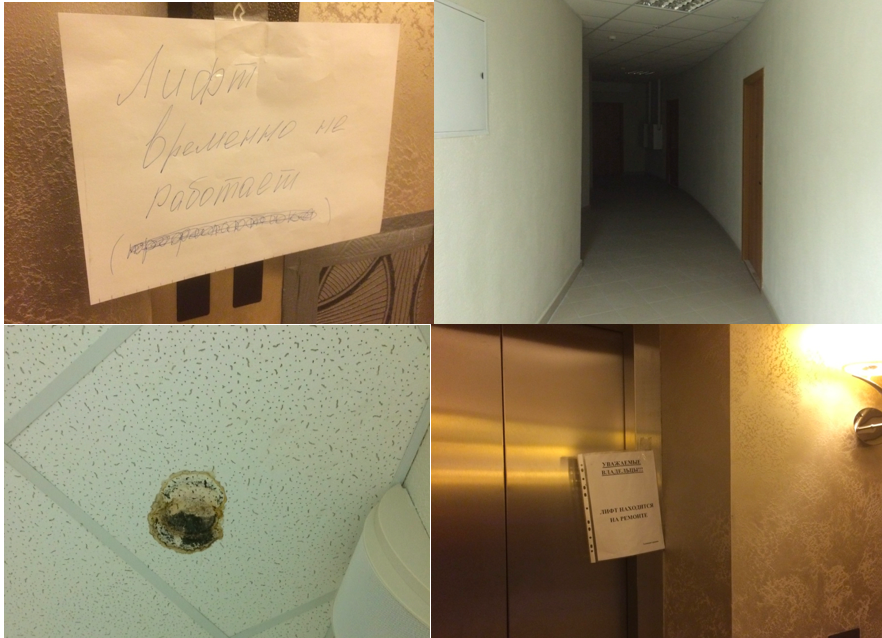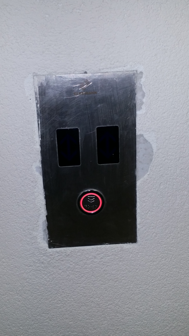 В итоге: мы имеем кнопку не того цвета, нерабочую индикацию движения лифта, раскуроченную стену.