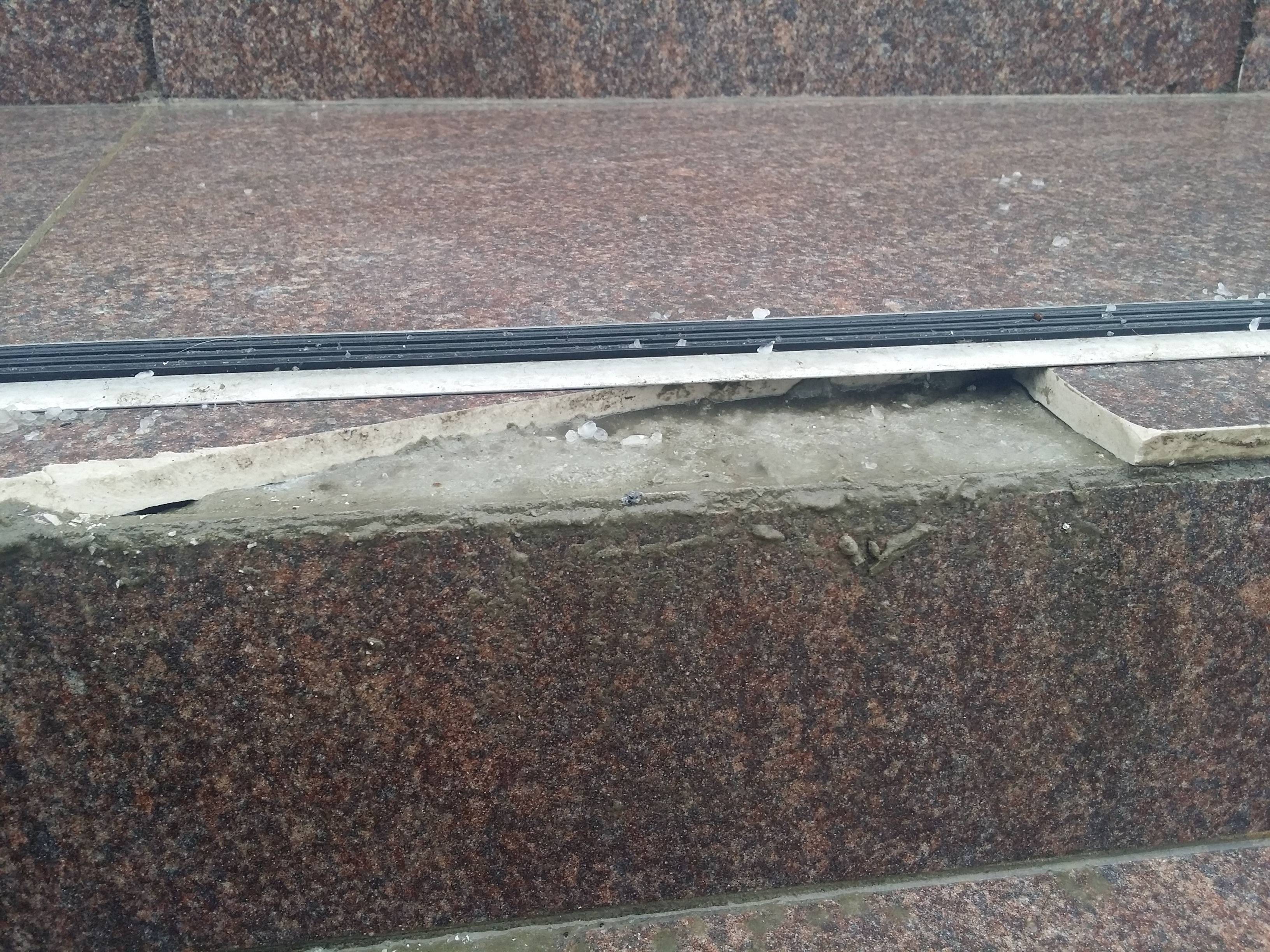 кривое напольное покрытие при входе в подъезд