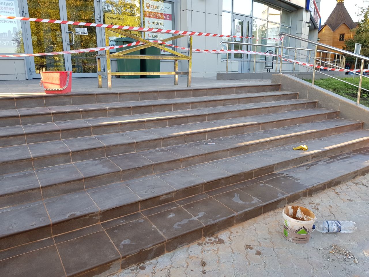 Но еще остается доделать вдоль банка и клиники, там лежит фасадная плитка вся в трещинах и скользкая!