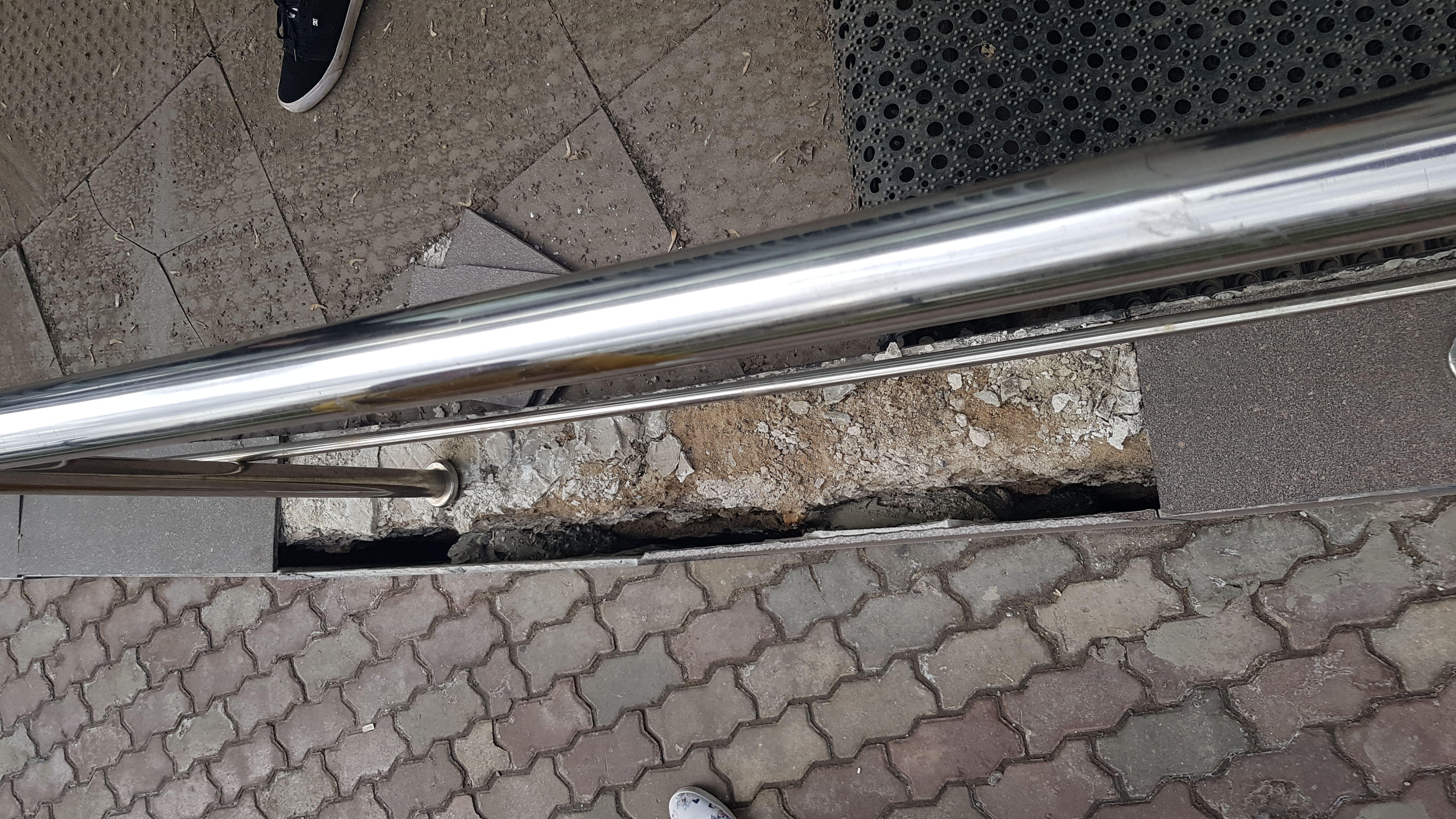 Оказалось, что плитки вообще ни на чем не держатся. Их можно просто взять. Собрать по всему пандусу руками. И сложить в стопочку. Или в мусорный бак...