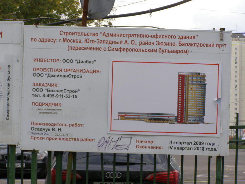 В июле 2009 на перекрестке Симферопольского и Балаклавского проспектов появилось ограждение с объявлением: